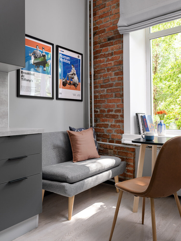 Фотография: Кухня и столовая в стиле Лофт, Современный, Эклектика, Малогабаритная квартира, Квартира, Студия, Проект дня, Москва, Кирпичный дом, до 40 метров, Варвара Гущина – фото на INMYROOM