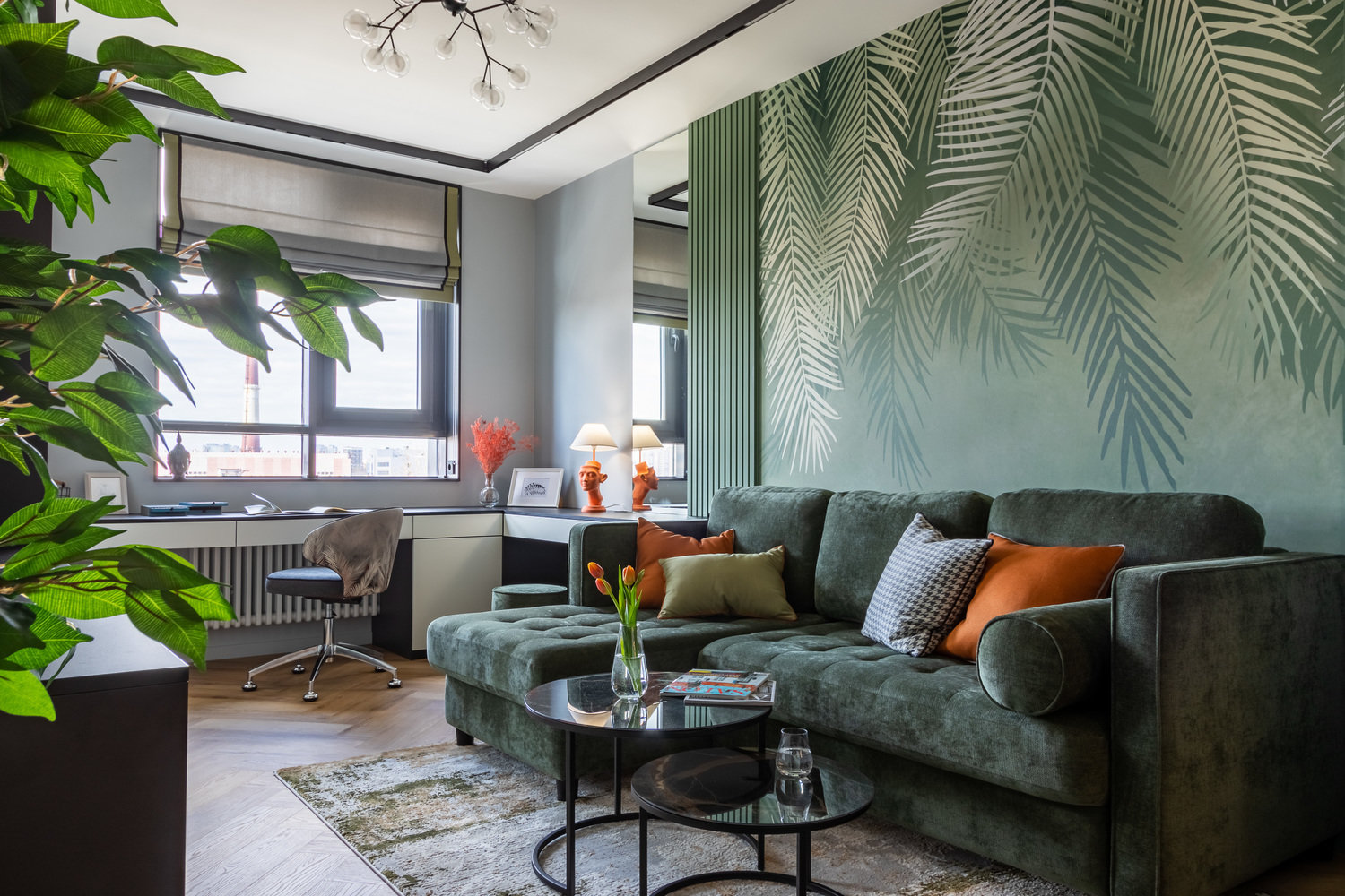 Двушка 50 м² в зеленых тонах для юной девушкиДизайн