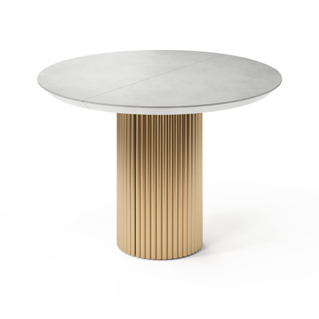 Раздвижной стол Ботейн M: мраморная столешница на золотых колоннах
