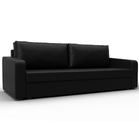 Ищете компактный диван, который легко превращается в комфортное спальное место? Диван-кровать «Лига 009» в черной экокоже трансформируется в кровать размером 128×190 см за одно движение. Идеальное решение для современных интерьеров, где каждый квадратный метр на счету. Три главных преимущества: - Практичная экокожа — не впитывает жидкости и легко очищается влажной салфеткой - Вместительный ящик для белья — дополнительное место хранения размером 189×54×26 см - Механизм "еврокнижка" — позволяет разложить диван за 15 секунд без усилий Диван впишется в комнату от 14 м² и станет идеальным решением для гостиной, кабинета или съемной квартиры. Его строгий дизайн с четкими линиями и двумя большими съемными подушками подойдет как для домашнего использования, так и для современного офиса. Плоские подлокотники обеспечивают дополнительный комфорт и поддержку во время отдыха.Технические характеристики: