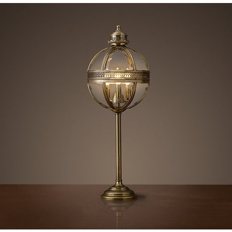 Настольная лампа ручной работы стилизована под старинный светильник викторианской эпохи, который когда-то использовался в отеле. Внутри открытой металлической сферы с ажурными деталями находится "канделябр" - в нем установлены патроны для лампочек в форме свечей.