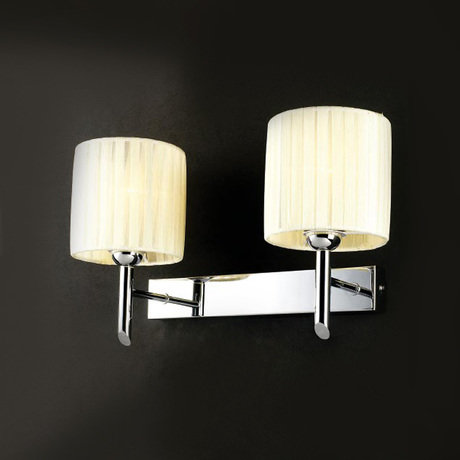 Настенный светильник из коллекции AMETHYST на хромированной арматуре. Текстильные плиссированные абажуры цвета слоновая кость.